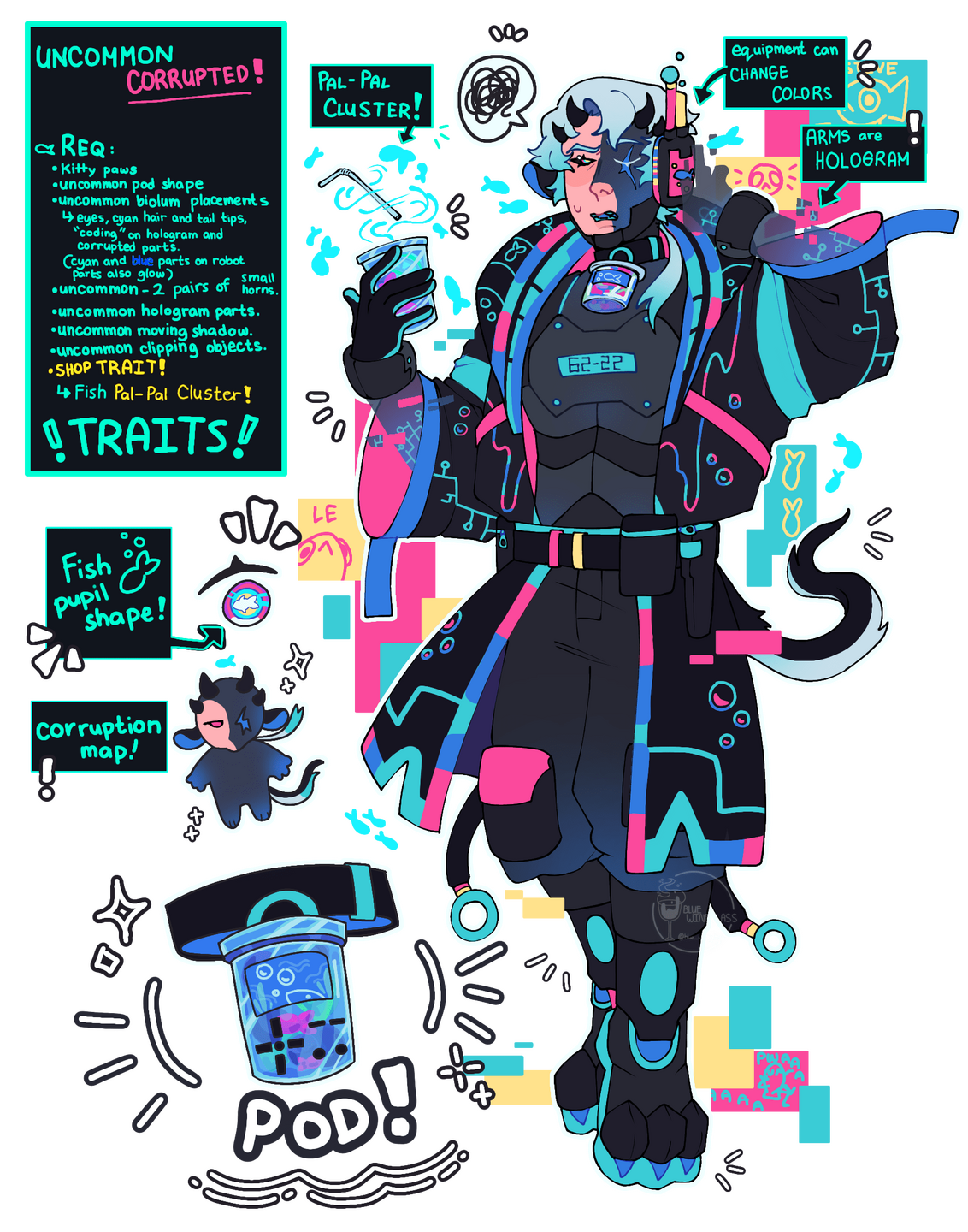 all terms found in the Artworks commission page still apply, please refer to [blank for now] if you're looking for the custom commission process.1.) Custom Rules and Process> Any design themes are okay! however, I may not be able to do customs that require me to look at bright colors for a long time, I apologize.> I can design Human or Anthro characters of any gender. I am also able to design Feral characters, however, it does depend on what feral character it is.> Please provide clear and detailed visual references if you have a particular design in mind (ie: moodboards, clothing references, color pallets, etc.). You may be as vague as you like if you're not looking for a specific design, but I'd prefer that you have at least a small idea of what you'd like for your satisfaction.> design drafts will be sent to you with a small watermark, you may make as many changes as you like during this stage. Only MINOR CHANGES can be made after completion. Any (other) major change after completion or in the middle of creating the design may result in extra charge.> The prices presented may vary depending on how much detail and how many changes are made during the creation process of the custom. They will be within the stated ranges, unless major changes are made after compeltion as stated above.> Edits on my art or design(s) is/are not allowed without my permission.> Commercial usage of my design and art is strictly not allowed unless a commercial fee is paid. (refer to the commercial tab for rates).2.) Character Uses and T.O.S for Designs> Redesigns are okay as long as the character is recognizable and with my permission.> You may turn the design into a closed species character (you may link this tos if permission is needed for approval! You may also ask me just in case if you have any concerns or questions!).3.) Trading and Resells> If the design is obtained through USD or resell, please do not resell for more than the character's worth unless commissioned artwork is added.> If the design is obtained through trading with no monetary value added, you are strictly not allowed to resell it for real life currency. However, you may use the character's worth to trade other goods of the same value.> You may add value to the character when reselling if there is a commission add on paid by you.> You can add monetary value to the design if you add personal artwork. However, please be fair and not inflate your pricing for higher monetary value.> There is a trade/resell cooldown of 1 week.> Do not trade any designs to blacklisted accounts/people (a link will be added soon.)> you can put my design up for f2e raffles/Wtas/Dtas. If unsure, please don't be afraid to ask me.4.) Payment Plans for Adopts> Down payment of minimum of 25% of your offered amount must be paid before i can put the character on hold.> Duration of the payment plan is flexible and can be discussed. Extensions are okay but please contact me about it as soon as you can.> Cancellations are not allowed and I cannot issue refunds unless there is a very specific and emergency issue for you financially. But please, beforehand, make sure that you are able to pay fully within the time frame we've discussed.